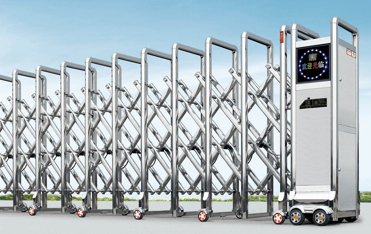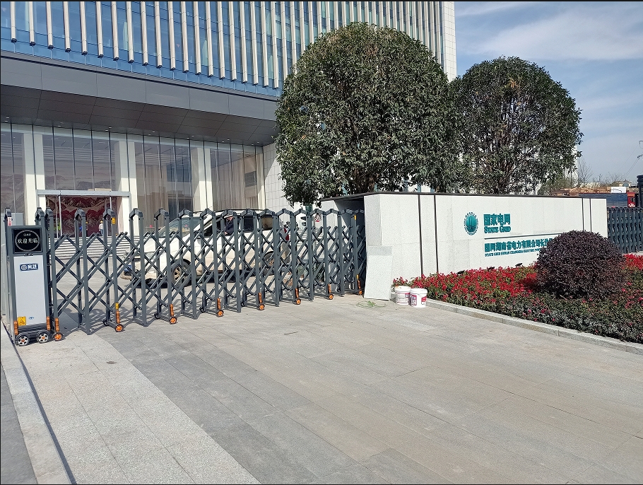 動(dòng)伸縮門主要有伸縮門體、機(jī)頭、控制器三部分組成。